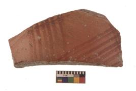 | Description / विवरण | Specimen of Potsherd with red decorative linear painting. |