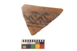 | Description / विवरण | Specimen of black on red ware with black decorative Lattice design geometric painting. |