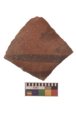 | Description / विवरण | Specimen of Potsherd black on red painted pottery. It is fine fabric in sharp contrast with painted design are executed in black pigment. |