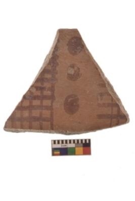 | Description / विवरण | Specimen of potsherd with red decorative geometric Net Pattern painting. |