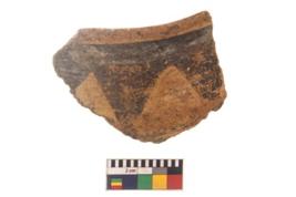 | Description / विवरण | Specimen of black on red ware with black decorative Triangles geometric painting. |