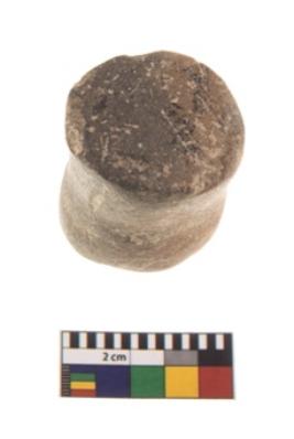 | Description / विवरण | A partially broken specimen of a terracotta gamesman. The base of this object is flat. |