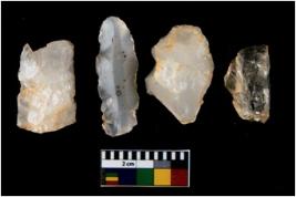 | Description / विवरण | There are n 4 flake cores. All of them are fully fluted flake cores without any trace of crested ridge flakes. Some of them have blunted edges whereas few have tapering edges. |