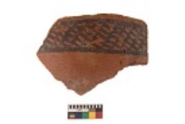 | Description / विवरण | Specimen of black on red ware with black decorative Lattice pattern geometric painting. |