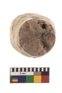 | Description / विवरण | A partially broken specimen of a terracotta gamesman with truncated ends. The base of this object is flat and flares slightly more than the apex. |
