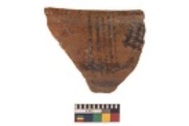 | Description / विवरण | Specimen of black on red ware with black decorative Vertical lines geometric painting. |