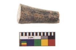 | Description / विवरण | A partially broken specimen of a terracotta gamesman with truncated ends. The base of this object is flat and flares slightly more than the apex. |