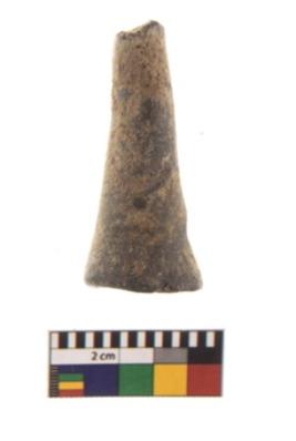 | Description / विवरण | A partially broken specimen of a terracotta gamesman with truncated ends. The base of this object is flat and flares slightly more than the apex. |