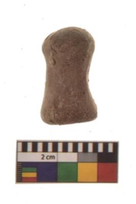 | Description / विवरण | A partially broken Specimen of a Terracotta Pendant. It is made of red ware, fine fabric, well-fired. It is cylindrical biocancve in shape. |