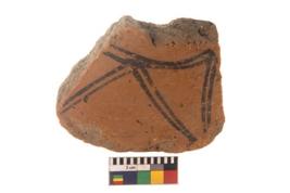 | Description / विवरण | Specimen of black on red ware with black decorative Curves geometric painting. |