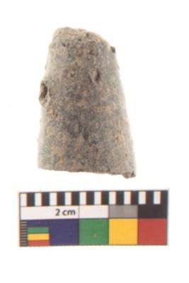 | Description / विवरण | A partially broken Specimen of a Terracotta Pendant. It is made of red ware, fine fabric, well-fired. It is cylindrical in shape with tapering upwards. |