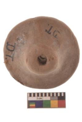 | Description / विवरण | Specimen of terracotta wheel with broken edges and scratch marks on one side near perforation.It is having rough surface and reddish in colour |