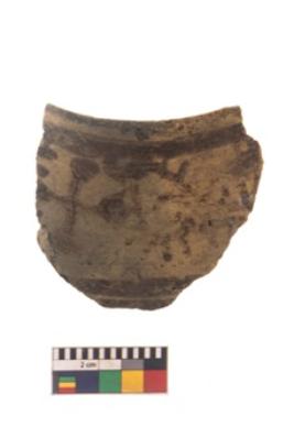 | Description / विवरण | Specimen of black on red ware with black decorative Cross and irregular lines with strokes and suspended loop geometric painting. |