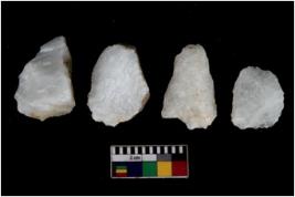 | Description / विवरण | Specimen of a cores with several broad fluted marks and some of them are tapering at one end. |