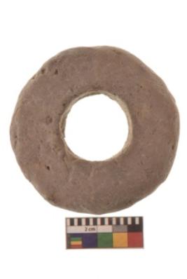 | Description / विवरण | Specimen of terracotta Wheel. It is red ware rounded shape with center perforation. |