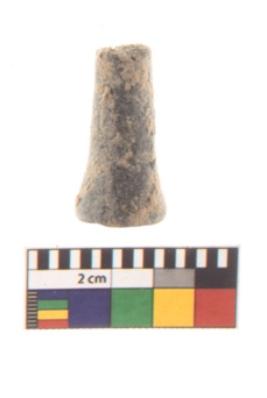 | Description / विवरण | A partially broken Specimen of a Terracotta Pendant. It is made of red ware, fine fabric, well-fired. It is cylindrical in shape with tapering upwards. |
