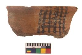 | Description / विवरण | Specimen of black on red ware with black decorative Square lattice geometric painting. |
