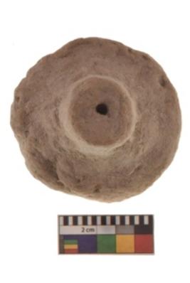 | Description / विवरण | Specimen of terracotta Wheel. It is red ware rounded shape with small center perforation. |