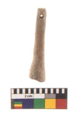 | Description / विवरण | A partially broken Specimen of a Terracotta Pendant. It is made of red ware, fine fabric, well-fired. It is cylindrical in shape with tapering upwards. The base of this object is flat and the hole for suspension is provided near the top. |