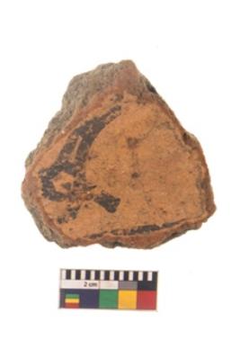 | Description / विवरण | Specimen of black on red ware with black decorative Intersecting curves with circle geometric painting. |