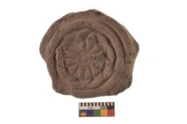 | Description / विवरण | Specimen of flower design with geometric pattern on exterior of thin coarse Red ware potsherd. |