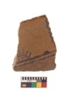 | Description / विवरण | Specimen of black on red ware with black decorative Symbol of sun and horizontal lines geometric and nature painting. |