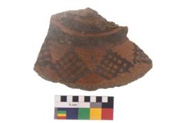 | Description / विवरण | Specimen of black on red ware with black decorative Octahedron like lattice design geometric painting. |