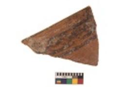 | Description / विवरण | Specimen of black on red ware with black decorative Lattice design geometric painting. |