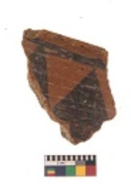 | Description / विवरण | Specimen of black on red ware with black decorative Triangles geometric painting. |