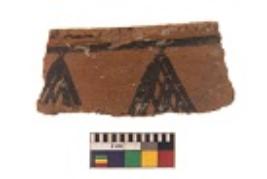 | Description / विवरण | Specimen of black on red ware with black decorative Lattice and arch like design geometric painting. |