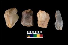 | Description / विवरण | There are n 4 utilized flakes. There are multi directional irregular scar pattern on both dorsal and ventral face of the flakes. two are chalcedony, and two are chert, three are tapering at one end and one has sharp edges. |