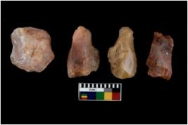 | Description / विवरण | There are n 4 utilized flakes. There are multi directional irregular scar pattern on both dorsal and ventral face of the flakes. three are tapering at one end and one has rounded edges. |
