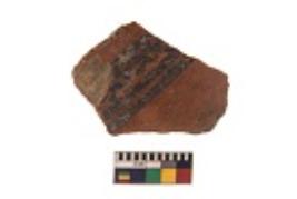 | Description / विवरण | Specimen of black on red ware with black decorative Lattice pattern geometric painting. |