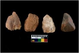 | Description / विवरण | There are n 4 utilized flakes. There are multi directional irregular scar pattern on both dorsal and ventral face of the flakes. three are chert, and one has chalcedony, two are tapering at one end and two are sharp edges. |