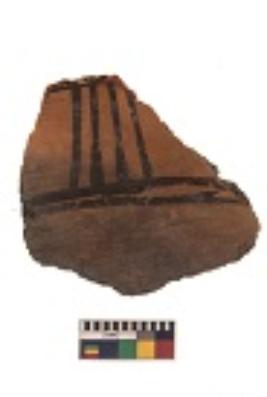 | Description / विवरण | Specimen of black on red ware with black decorative Parallel horizontal lines intersecting vertical lines geometric painting. |
