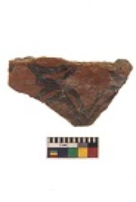 | Description / विवरण | Specimen of black on red ware with black decorative Curved lines geometric painting. |