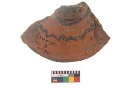 | Description / विवरण | Specimen of black on red ware with black decorative Zigzag lines geometric painting. |