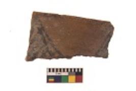 | Description / विवरण | Specimen of black on red ware with black decorative Lattice design geometric painting. |