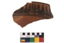 | Description / विवरण | Specimen of black on red ware with black decorative Group of elongated vertical triangles geometric painting. |