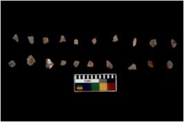 | Description / विवरण | Specimen of flakes chips with prominent flaking marks. It made up of a short flakes with sides trimmed. |