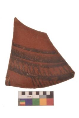 | Description / विवरण | Specimen of potsherd with black decorative geometric Net Pattern painting. |