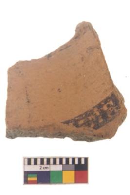 | Description / विवरण | Specimen of black on red ware with black decorative Lattice design geometric painting. |