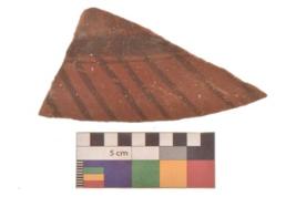 | Description / विवरण | Specimen of Potsherd black on red painted pottery. linear pattern |