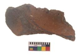 | Description / विवरण | Specimen of black on red ware with black decorative Curves geometric painting. |