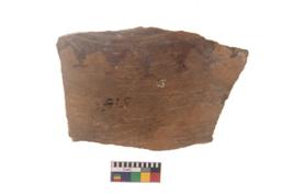 | Description / विवरण | Specimen of black on red ware with black decorative Arch like design with strokes at the end geometric painting. |