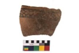 | Description / विवरण | Specimen of black on red ware with black decorative Lattice design geometric painting. |