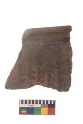 | Description / विवरण | Specimen of black on red ware with black decorative Leaf like design nature painting. |