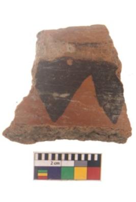 | Description / विवरण | Specimen of black on red ware with black decorative Triangles geometric painting. |