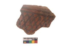 | Description / विवरण | Specimen of black on red ware with black decorative Lattice geometric painting. |