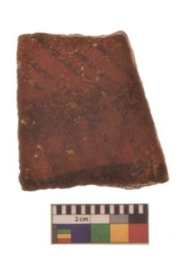 | Description / विवरण | Specimen of a Potsherd with black decorative geometric painting on it.It is set of two zigzag bands. |